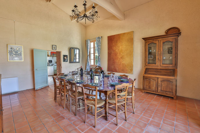 Le séjour principal permet de se retrouver autour de grandes tables, de moments de détente ou de jeux, dans une atmosphère chaleureuse et détendue.