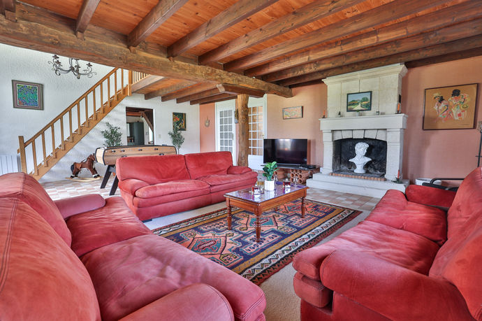 La maison offre de grands volumes, adaptés aussi bien aux moments partagés qu’aux instants de tranquillité.