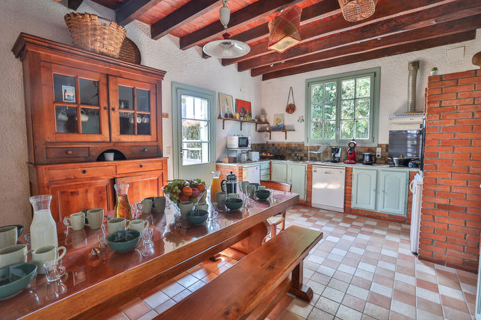La cuisine, entièrement équipée, a été pensée pour accueillir aussi bien les repas du quotidien que les grandes tablées.